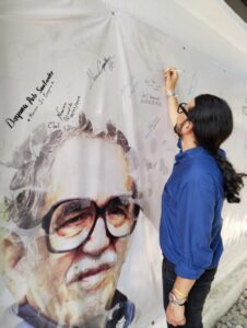 Me voy con la sonrisa del cuadro de Gabriel García Márquez que está en la oficina del despacho, el que me recibió y me despidió de la misma manera, con la calidez que merece  cualquier ser humano, sin importar su cargo, formación académica o apariencia física.